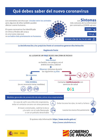 Cartel del Gobierno de Aragón con información sobre los sintomas y prevención del coronavirus.